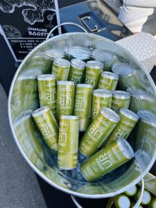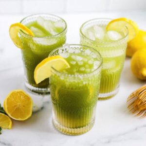 This shot blends matcha with ginger, lemon juice, raw honey, and plant-based milk – delivering a smooth energy boost.