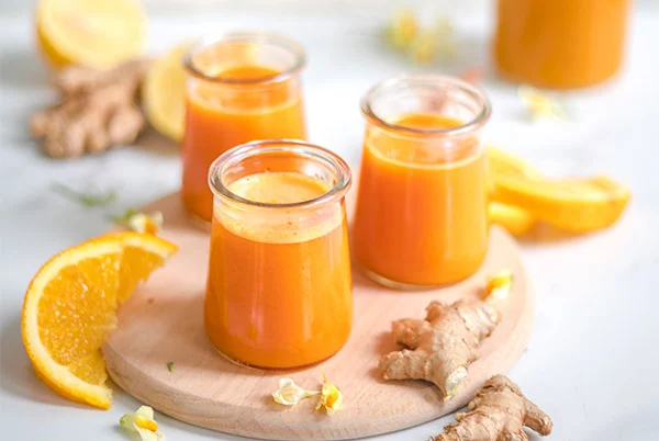 This shot combines turmeric, ginger, lemon, orange juice, and raw honey to naturally strengthen your immune system and reduce inflammation.